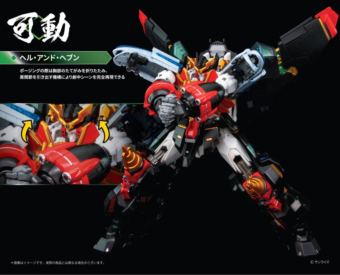 นอกเหนือจากมือที่เคลื่อนย้ายได้ 5 นิ้ว (ขวา / ซ้าย), มือที่เคลื่อนย้ายได้ 5 นิ้ว (ขวา / ซ้าย), มือจับ (ขวา / ซ้าย), มือซ้ายสำหรับป้องกันร่มเงาและส่วนมือสำหรับข้อมือสำหรับนรกและ สวรรค์รวมอยู่ด้วย "นรกและสวรรค์ !! เจมกิลปืนไปกูโฟ ... วิต้า !!" เมื่อโพสท่าแผงคอจะพับและดึงข้อต่อไหล่ออกเพื่อสร้างฉากในการเล่น ดึงนิวเคลียสของ Zonder ออกมา! !!