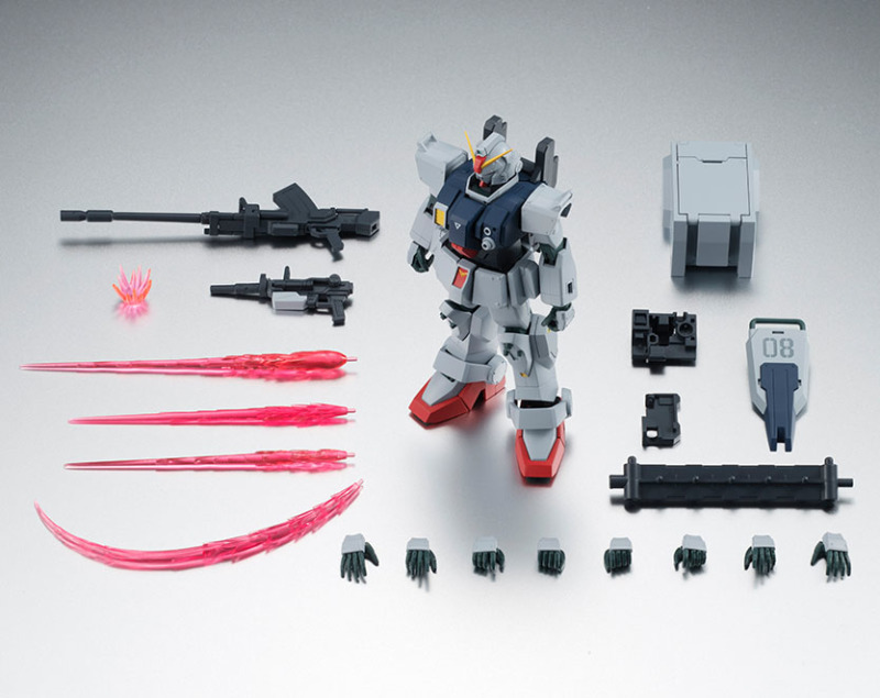 ทั้งปืนกล 100 มม. และปืนใหญ่ 180 มม. สามารถถอดประกอบและเก็บไว้ในตู้เก็บอาวุธได้ นอกจากนี้ยังมีเครื่องประดับมากมาย เช่น บีมเซเบอร์ที่เก็บไว้ด้านนอกน่อง โล่เล็กๆ สำหรับมือซ้าย และเทคนิคพิเศษในการถ่ายภาพ หากคุณต้องการเพิ่มความสามารถในการเล่น ROBOT Soul ยังได้ประกาศ " 08th Squad Expansion Accessories Set ver. ANIME " ซึ่งรวมถึงเครื่องยิงมิสไซล์ เครื่องยิงจรวด และชิ้นส่วนสเปเชียลเอฟเฟกต์ต่างๆ มากมาย ซึ่งสามารถจำลองฉากคลาสสิกใน เล่น!