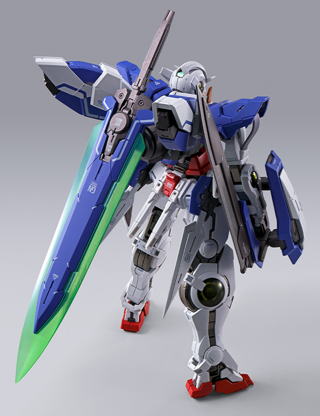 Exia ติดตั้ง Proto GN Raster Sword และ GN Devise Backpack ซึ่งเป็นอุปกรณ์ใหม่ที่ออกแบบโดยคุณ Kanetake Ebikawa ผู้ดูแลการออกแบบกลไกของซีรีส์ "Mobile Suit Gundam 00" ดาบแรสเตอร์ Proto GN เล่มใหญ่สามารถติดตั้งได้ที่ด้านหลัง