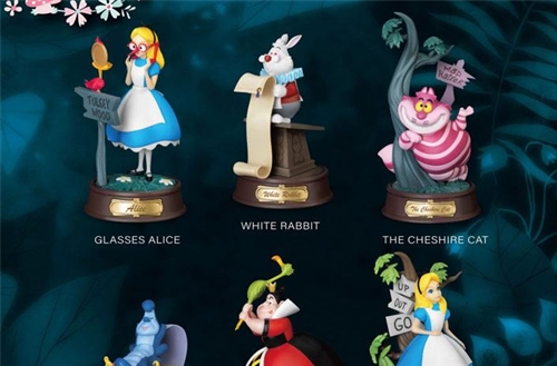 Brand : Beast KingdomTotal of six to collect in the set. Each PVC mini figure stands 10 cm tall.Content:- 1x Alice- 1x Glasses Alice- 1x The Chesire Cat- 1x Queen of Hearts- 1x White Rabbit- 1x Caterpillar