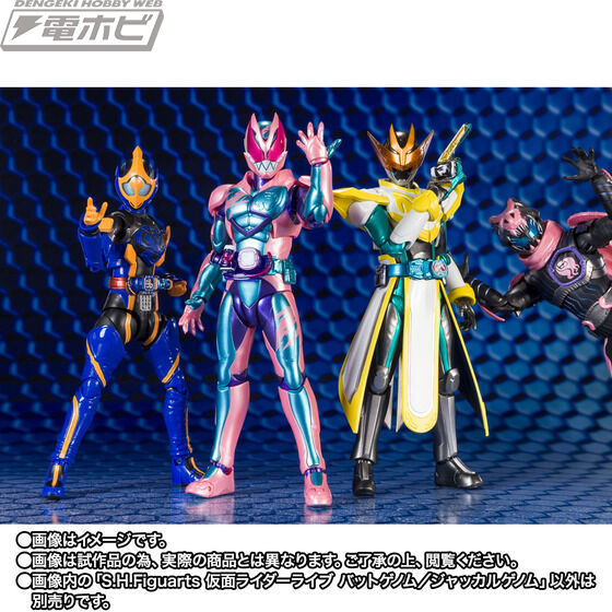 From the SHFiguarts Kamen Rider Revise series, Kamen Rider Live, which was announced to be under development, will be released! Reservations will start at 16:00 on Friday, August 19, 2022 at Tamashii Web Store in Premium Bandai!In addition to four types of replacement wrists on each side, parts for the live gun weapon are included. In addition, a set of replacement parts for the Jackal Genome, including the Jackal Bistam, is included, so you can enjoy the display even when the form is changed.In addition, face crack parts for the bat genome corresponding to the separately sold SHFiguarts Kamen Rider Evil Bat Genome / Jackal Genome are also included. You can reproduce the famous scene in the play.In addition, a set of Kongby stamps is also included as a bonus part! SHFiguarts Kamen Rider Live Bat Genome / Jackal Genome is priced at 8,250 yen including tax and is scheduled to be shipped in February 2023.SHFiguarts Kamen Rider Live Bat Genome / Jackal GenomeMovable figure made of ABS/PVCHeight: about 150mmProduct contents: main body, replacement wrist left and right 4 types, live gun parts, replacement parts for Jackal Genome, Jackal Bistamp, Evil Bat Genome face crack partsBonus parts: KongbystampPublisher: BANDAI SPIRITSPrice: 8,250 yen (tax included)Reservation acceptance start: 16:00 on Friday, August 19, 2022Scheduled to be shipped in February 2023(C) 2021 Ishimori Pro, TV Asahi, ADK EM, Toei