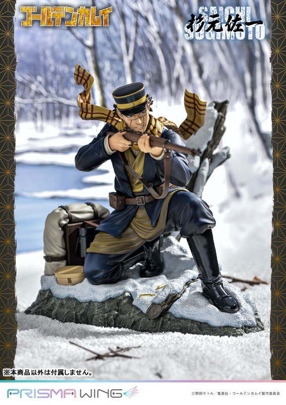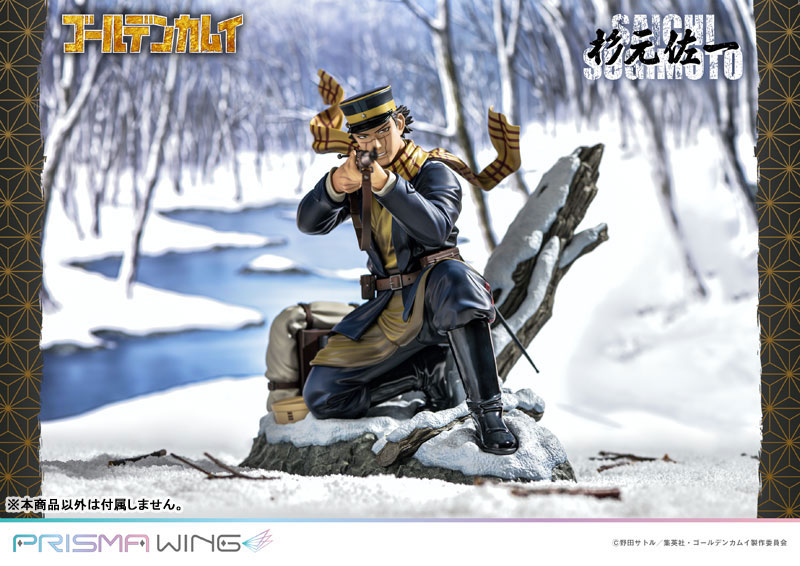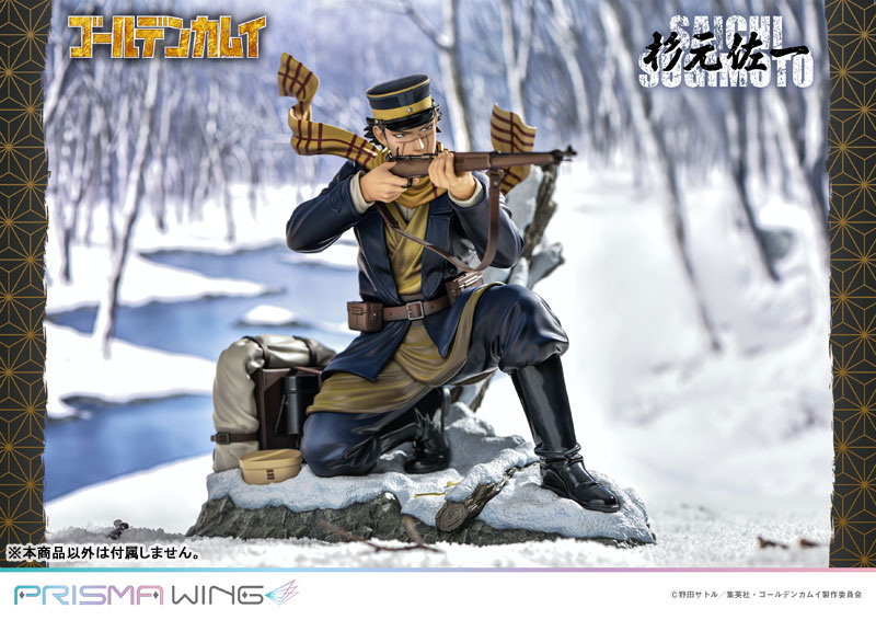 DescriptionsWith his scarf fluttering in the cold wind, He takes aim at his target with his 1930s model infantry rifle. His gaze is sharp, and his determination ironclad. From the popular TV anime Golden Kamuy, we proudly present Saichi Sugimoto!The original artwork illustrated specifically for this piece depicts a scene in a rough northern landscape, which has been perfectly captured in this figurine. His fierce expression peeking out from his military cap is just as it was in the series. The scars across his face have also been faithfully reproduced.His equipment and clothing have also been accurately depicted with stunning detail. The textures in his leather belt, boots, and utility bag, as well as the wrinkling in his clothing, all add to the dynamic nature of his pose.The highly detailed rifle and bayonet give the viewer a sense of tension. A pack with food rations is placed behind him on a base that portrays the harsh climate of Hokkaido. The rugged formations of snow-covered rocks and trees create an immersive environment.Earning the title “Sugimoto the Immortal” for his savage fighting style, this war veteran, caught up amidst the survivalist competition over the Ainu's fortune of gold, will make an excellent addition to your collection!*As a special Prime 1 Studio online exclusive bonus, an acrylic block featuring the official illustrated artwork will also be included!Specifications:Acrylic block featuring official artwork [Prime 1 Studio Online Exclusive]PVC figure base includedNotice:Prototype samples shown.Product details could be subject to change without further notice.Please note the final product specifications may differ because each product is Handmade.Since the product is still in the development stage, the Size (up to 10%) & Weight (up to 10kg) may be changed during the production stage.©野田サトル/集英社・ゴールデンカムイ製作委員会