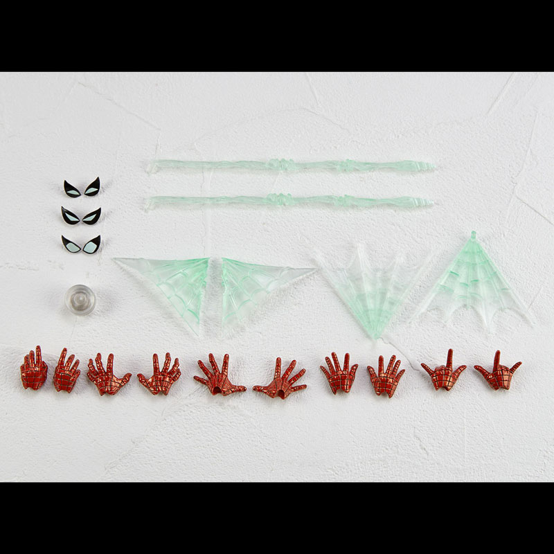Pre-painted Complete FigureSize: Approx. H160mmMaterial: Main Part: PVC, ABS / Joint: POM / Display Base: ABSArticulation Points: 26Joints Used: 8[Set Contents]Main figureWeb Effect (A) x2Web Effect (B) x2Web Effect (C) x2Optional eye x6Optional hand part x10Magnet to hang on a wall x1Base arm's extension part x1Pick for the eye parts x1Display stand x1Sculptor: Katsuhisa YamaguchiMARVEL