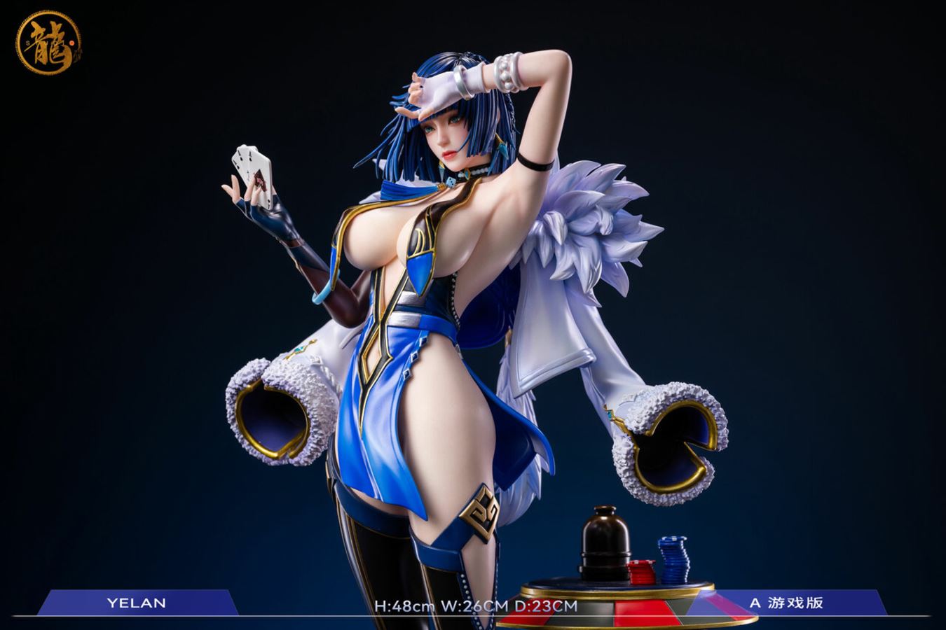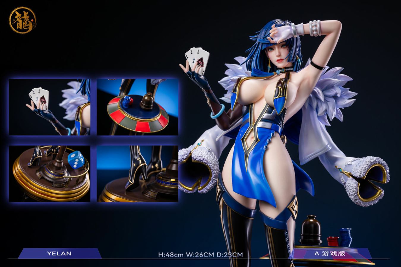 -Brand:Dragon studio-Scale:1:4-Version: A(Regular/EX), B(resin/silica, Regular/EX)-Size:A(H)48cm (W)26cm (D) 23cm /B (H)48cm (W)26cm (D) 22cm-Configuration:A(Game):Table+regular head sculpt+poker+base, Cast off (full body) B(Tuning):blindfold head + whip + simple base, Cast off (full body)-ES:TBD-Release date:Q4 2023EX: Extra head(Regular/BlindFold head) + Poker/whip